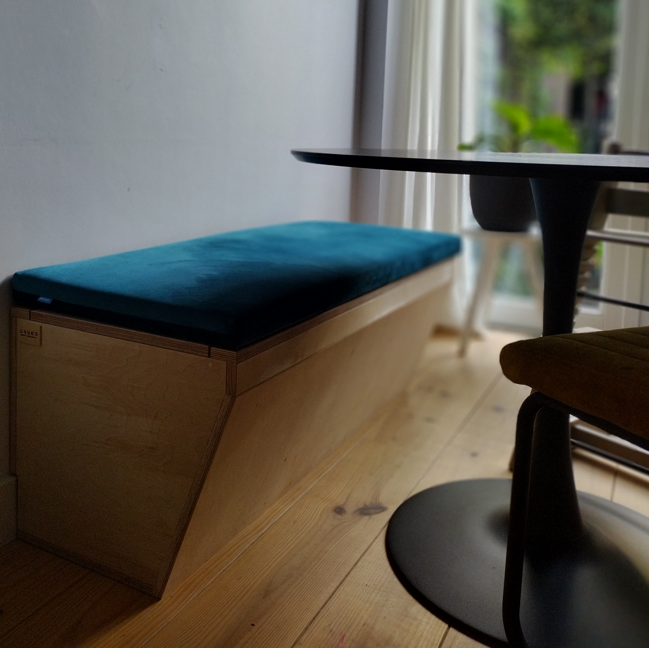 Ik werk met hoogwaardige plaatmaterialen en houtsoorten. Per meubel kies ik wat technisch en visueel het beste past. Berken multiplex is een veelgebruikte basis vanwege de sterkte, stabiliteit en rustige uitstraling. Voor toepassingen zoals strak spuitwerk of houtfineer gebruik ik ook andere materialen.